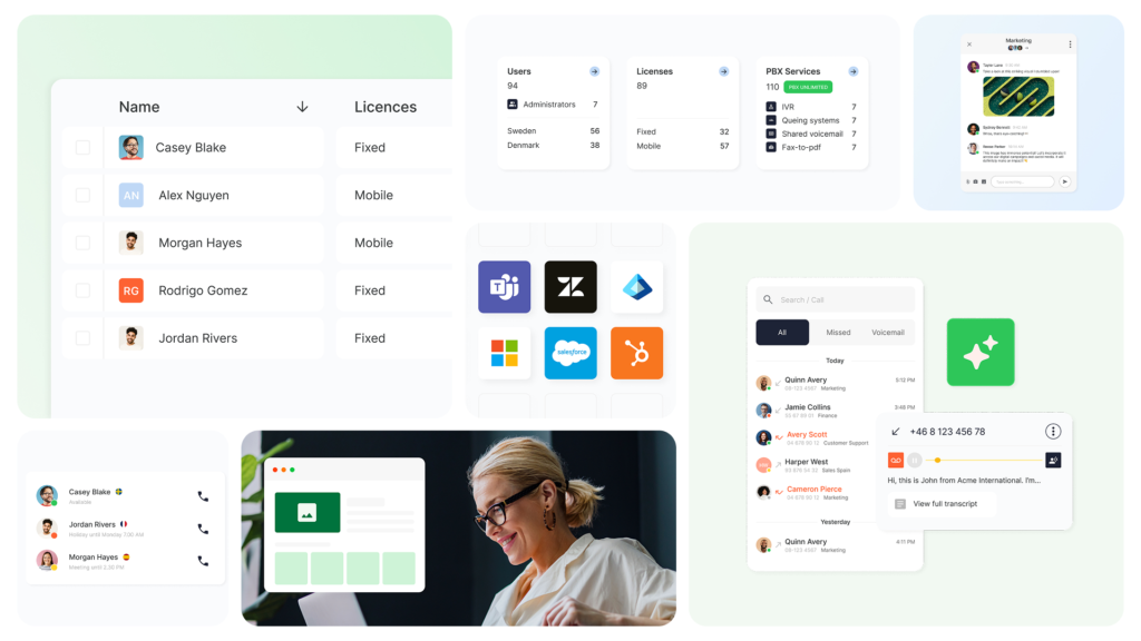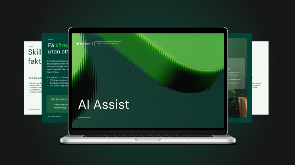 Produktscreenshots, miljöbilder och gifar för användning i presentationer, på webben, i nyhetsbrev och sociala medier. Hjälper till att visuellt illustrera Telavox tjänster och gränssnitt.