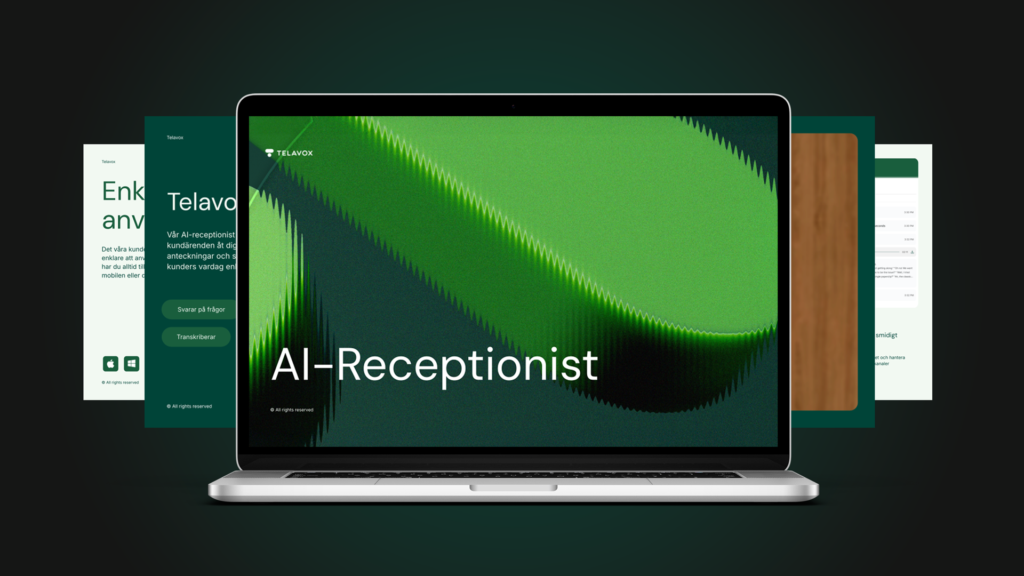 Komplett paket med presentation, produktblad, kundcase, demo, video, bilder och SoMe-material för att beskriva värdet av AI-receptionisten.