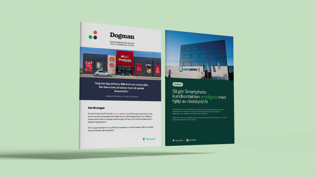 Låt befintliga kunder berätta hur Telavox förenklar deras vardag. Flera case för olika branscher och behov, perfekta i presentationer, pitchar och på webben.