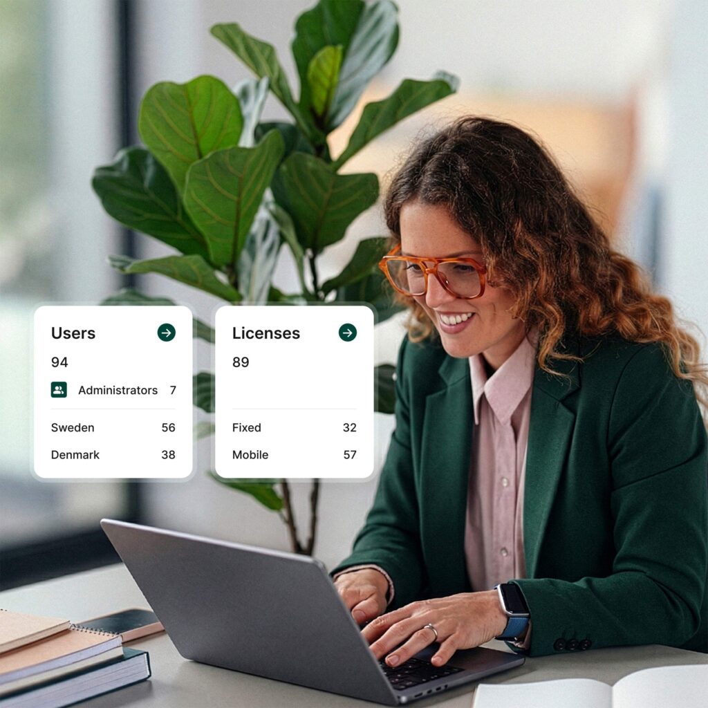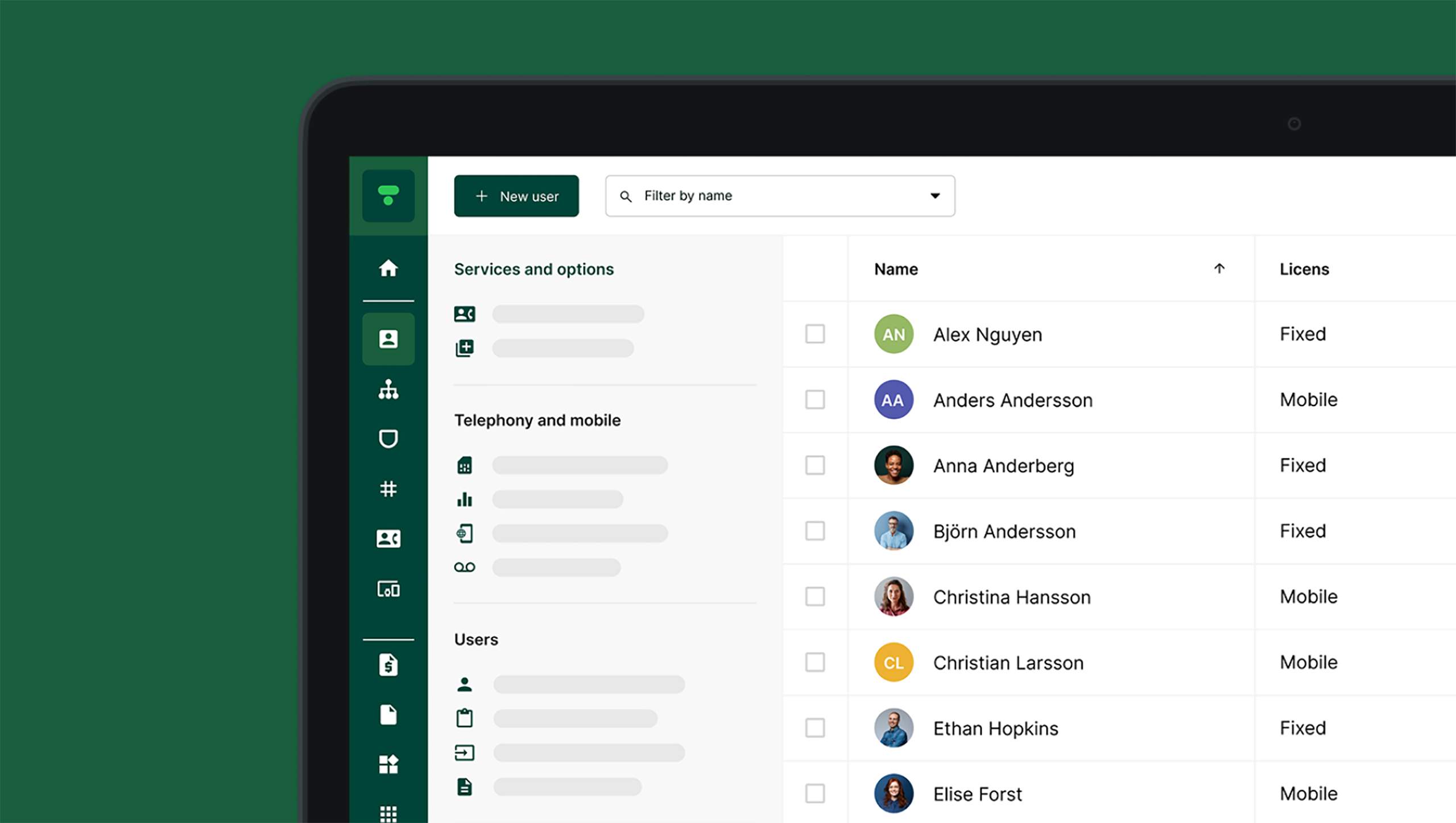Sköt allt från användare till växelfunktioner och abonnemang direkt i vår adminportal.