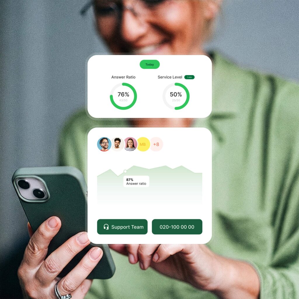 Hantera samtal, växel och följ statistik direkt i mobilen.